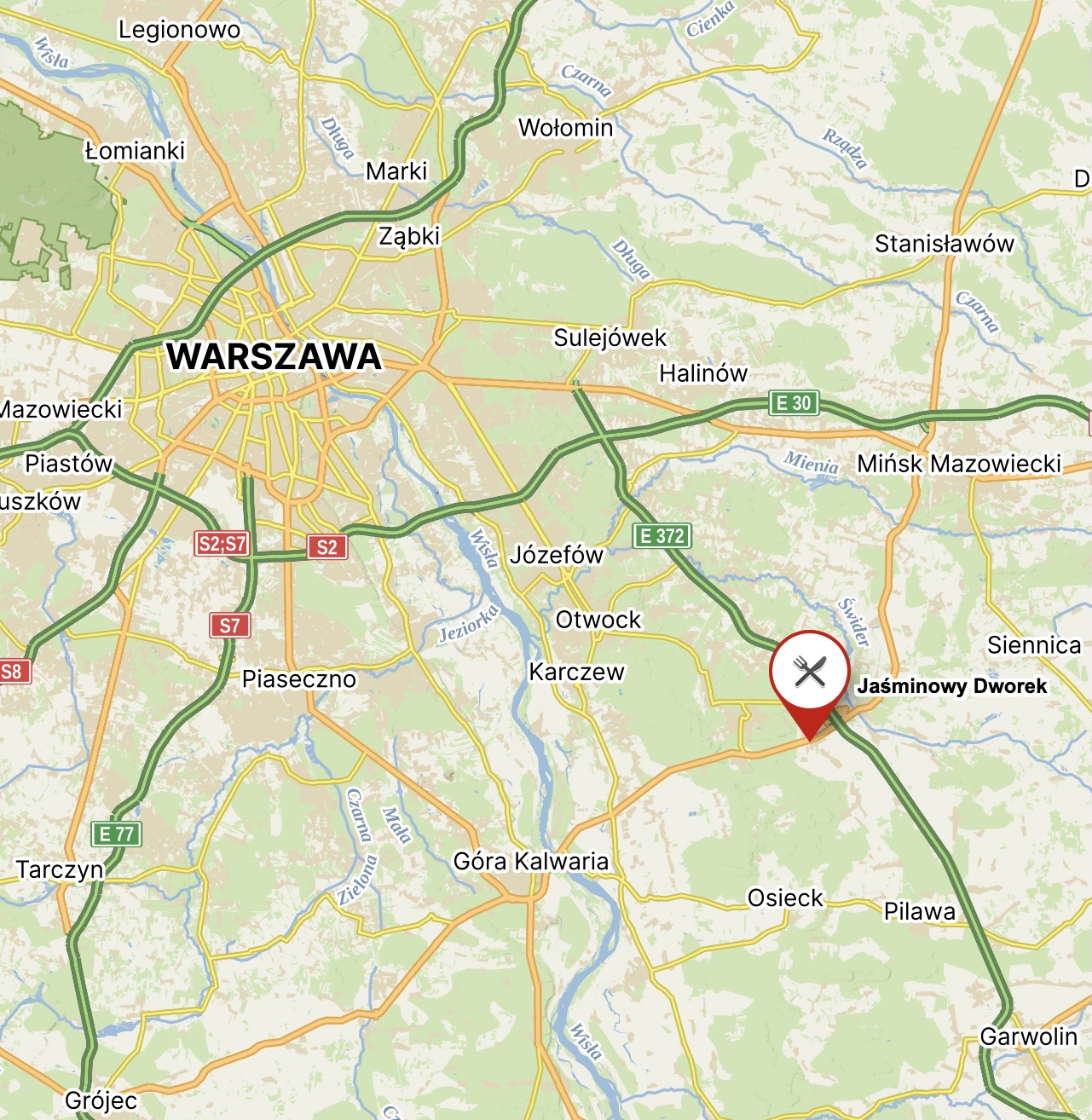 Obiekt znajduje się blisko Drogi Krajowej Nr 50 (od ronda w Kołbieli 2km w stronę Grójca i Góry Kalwarii, 2 km od autostrady Warszawa – Lublin, 20km od granic Warszawy).